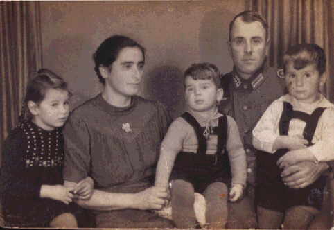 15 Jahre alt. In Metzingen musste ich auf einem Bauernhof arbeiten. Dort war ich auch zusammen mit den Bauern und ihren drei Kindern untergebracht, sie sind auf dem Bild zu sehen. Die Versorgung mit Nahrungsmitteln